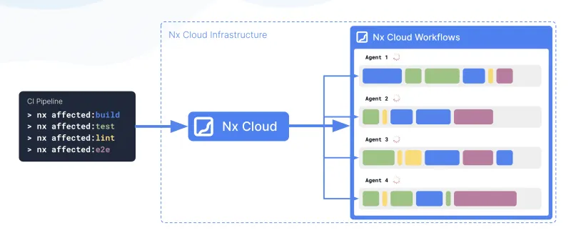 Apart from the distributed caching, Nx Cloud already offers DTE (Distributed Task Execution), which is a mechanism to seamlessly distribute tasks across various machines to achieve a high degree of parallelism. Up until now it was on you to configure your existing CI in a way to provision machines (agents) to Nx Cloud DTE. This required some fine-tuning to understand the best level of parallelism given the underlying monorepo and tasks that need to be run. If you have too many machines, it’ll be wasteful, if you have to few your CI will be slower.