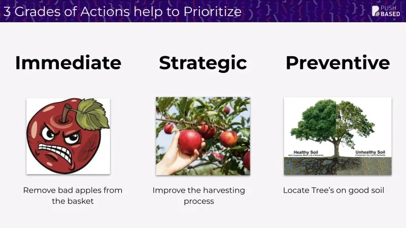 To prioritize which ones to address first, Michael uses the following metaphor: