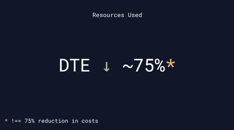 The comparative analysis of their DIY solution versus DTE revealed roughly equivalent performance metrics. However, the DTE framework shone in its simplicity, maintainability, and resource efficiency, achieving similar outcomes with a 75% reduction in resource utilization.