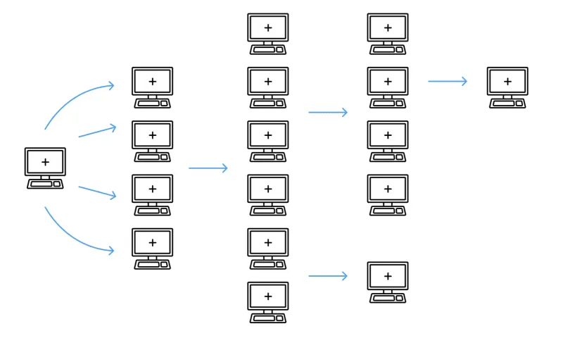 Notice, since we want to do this as fast as possible, we want to parallelize these operations across machines. This involves also taking care of transferring build artifacts between them.